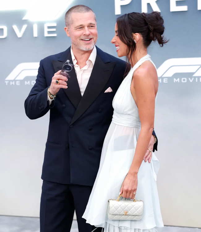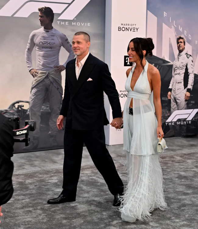 Çiftin, "F1" galasında kırmızı halıda çok aşık göründükleri ve defalarca el ele tutuştukları bildirildi. "Page Six"e göre, Pitt daha sonra fotoğraf çektirirken kolunu onun beline dolamış halde görüldü.